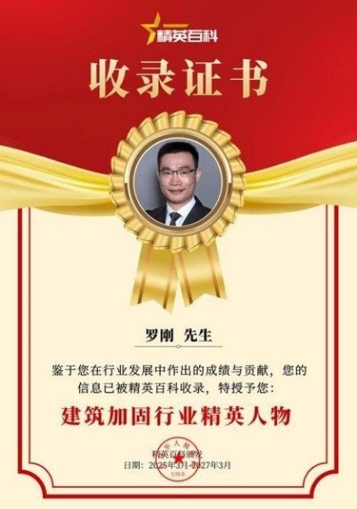 凭借突出贡献,罗刚先后获评“创新中国建筑加固行业十大榜样人物”“中国品牌十大匠心人物”,2024年更当选“中国建筑学会建筑改造和城市更新专业委员会委员”。但他并未止步于个人成就,而是将实践经验转化为行业共识。